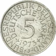 According to the latest data as of December 5, 2025 the average price of a Silver coin 5 Mark 1973 with mark J is 20 USD for regular strike and 6 USD for coins minted using the PROOF technology.