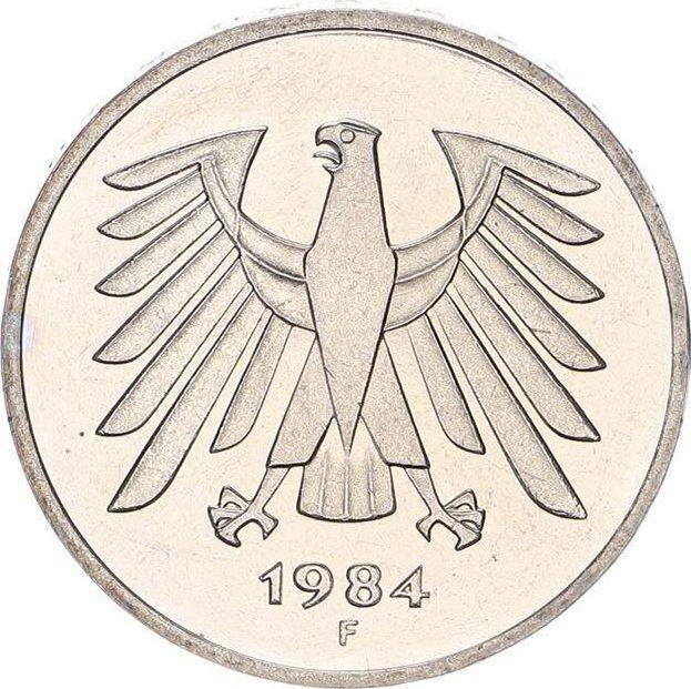 To sell the 5 Mark 1984 with the letters F we recommend contacting specialized numismatic companies that hold regular auction sales. Public auctions are the most fair and secure way to sell valuable collectible coins. Go to the list of companies to find a suitable platform.