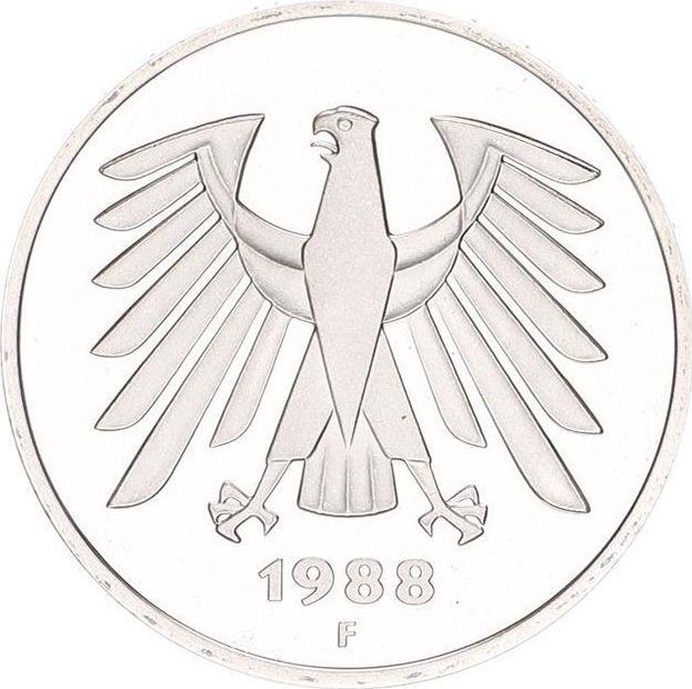 To sell the 5 Mark 1988 with the letters F we recommend contacting specialized numismatic companies that hold regular auction sales. Public auctions are the most fair and secure way to sell valuable collectible coins. Go to the list of companies to find a suitable platform.