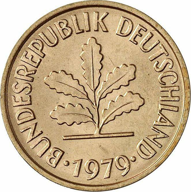 Find out the current coin value of the German 5 Pfennig 1979 with mark D. This iron coin from the times FRG struck at the Munich Mint