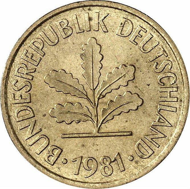 According to the latest data as of December 6, 2025 the average price of a coin 5 Pfennig 1981 with mark G is 50 USD. The coin is made of non-precious metal, so in poor condition it may have extremely low value and liquidity.
