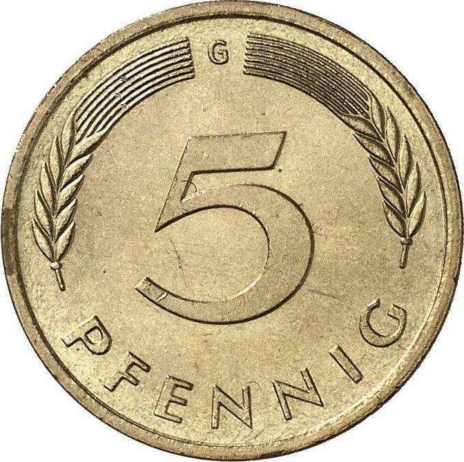 Find out the current coin value of the German 5 Pfennig 1981 with mark G. This iron coin from the times FRG struck at the Karlsruhe Mint. Wondering how much a coin like this is worth? The record price belongs to the lot 2160 sold at the Emporium Hamburg Münzhandelsgesellschaft mbH auction for EUR 45. Bidding took place November 17, 2025.