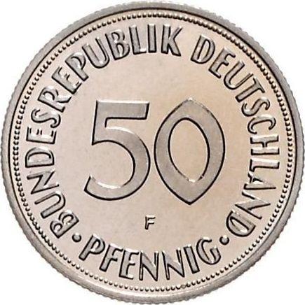 Find out the current coin value of the German 50 Pfennig 1967 with mark F. This copper-nickel coin from the times FRG struck at the Stuttgart Mint