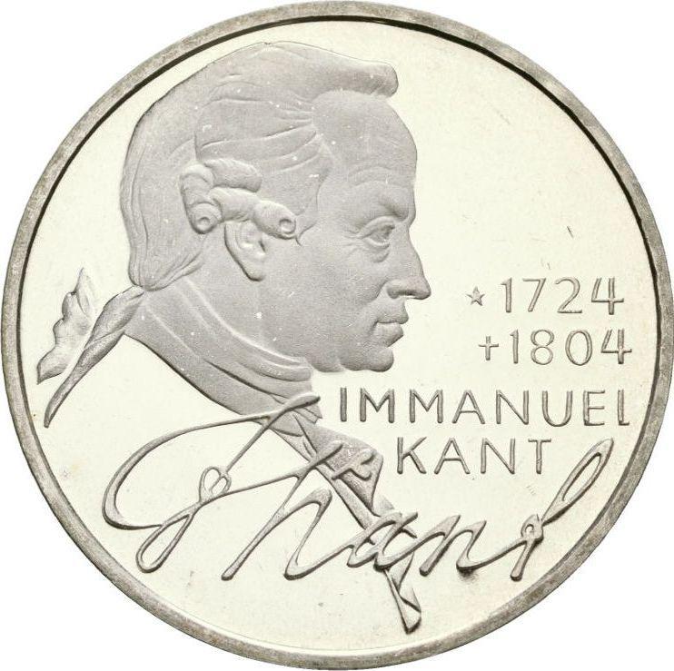 According to the latest data as of December 5, 2025 the average price of a Silver coin 5 Mark 1974 "Immanuel Kant" with mark F is 15 USD for regular strike and 10 USD for coins minted using the PROOF technology.