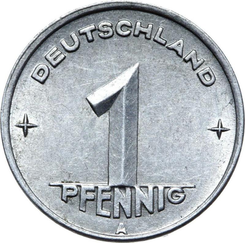 Find out the current coin value of the German 1 Pfennig 1948 with mark A. This aluminum coin from the times GDR struck at the Berlin Mint. Wondering how much a coin like this is worth? The record price belongs to the lot 5178 sold at the Fritz Rudolf Künker GmbH & Co. KG auction for EUR 320. Bidding took place March 12, 2013.