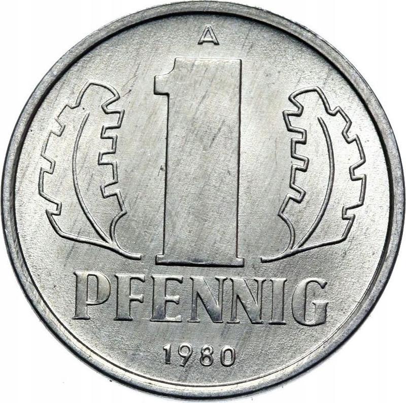 Find out the current coin value of the German 1 Pfennig 1980 with mark A. This aluminum coin from the times GDR struck at the Berlin Mint. Wondering how much a coin like this is worth? The record price belongs to the lot 1496 sold at the Russiancoin auction for RUB 10,000. Bidding took place February 6, 2025.