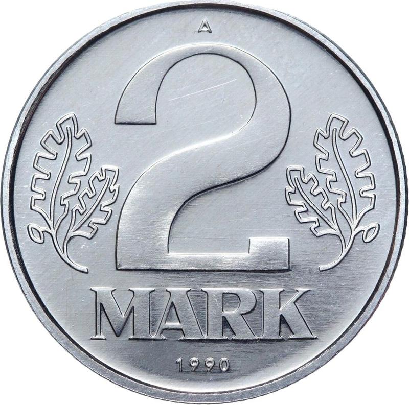 According to the latest data as of December 5, 2025 the average price of a coin 2 Mark 1990 with mark A is 40 USD. The coin is made of non-precious metal, so in poor condition it may have extremely low value and liquidity.