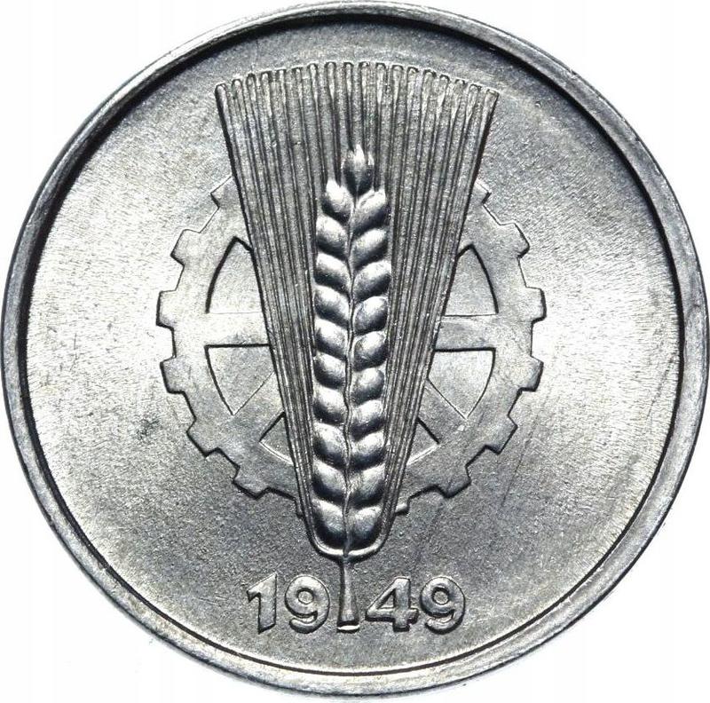 Find out the current coin value of the German 5 Pfennig 1949 with mark A. This aluminum coin from the times GDR struck at the Berlin Mint. Wondering how much a coin like this is worth? The record price belongs to the lot 65370 sold at the Heritage Auctions auction for USD 103. Bidding took place August 28, 2014.