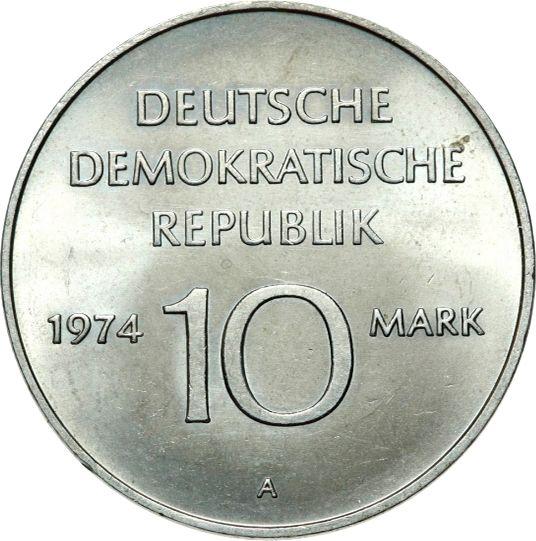According to the latest data as of December 5, 2025 the average price of a coin 10 Mark 1974 "25 years of GDR" with mark A is 4 USD. The coin is made of non-precious metal, so in poor condition it may have extremely low value and liquidity.