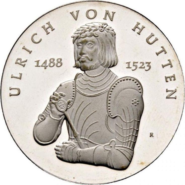 According to the latest data as of December 5, 2025 the average price of a Silver coin 10 Mark 1988 "Ulrich von Gutten" with mark A is 50 USD for regular strike and 140 USD for coins minted using the PROOF technology.