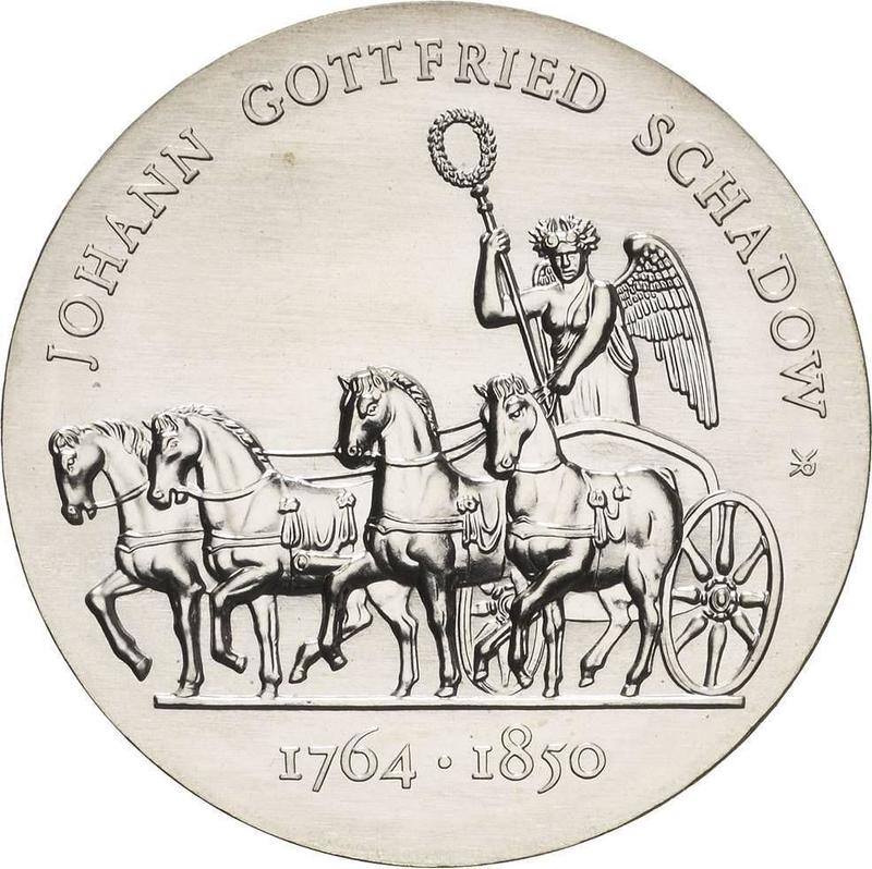 Find out the current coin value of the German 10 Mark 1989 "Johann Gottfried Shadow" with mark A. This silver coin from the times GDR struck at the Berlin Mint. Wondering how much a coin like this is worth? The record price belongs to the lot 3490 sold at the Teutoburger Münzauktion GmbH auction for EUR 1,300. Bidding took place December 1, 2020.