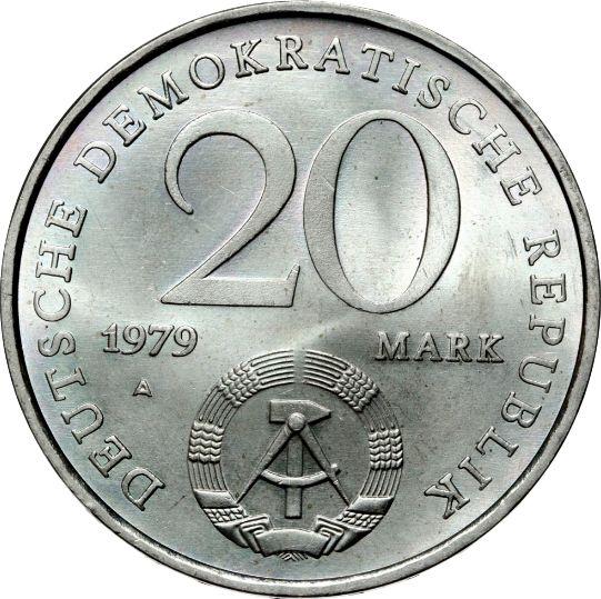 According to the latest data as of December 5, 2025 the average price of a coin 20 Mark 1979 "30 years of GDR" with mark A is 15 USD. The coin is made of non-precious metal, so in poor condition it may have extremely low value and liquidity.