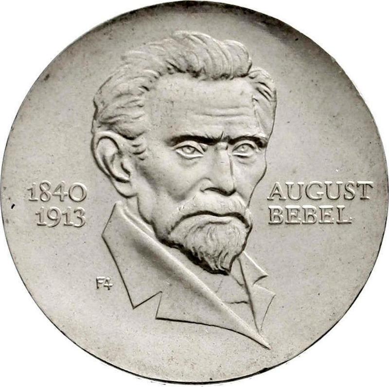 20 Mark 1973 "August Bebel". Double inscription on the edge (Germany, GDR)