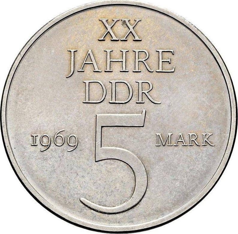 How much is the copper-nickel coin GDR 5 Mark 1969 A "20 years of GDR", Metal test?