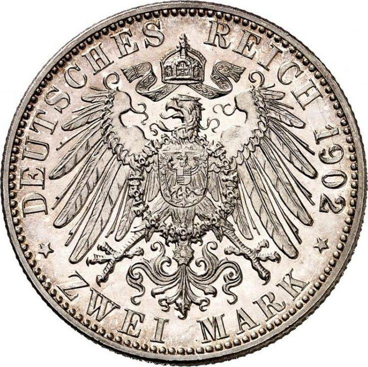 The information on the current value of the German coin 2 Mark 1902 "Baden" with the letters G is based on actual auction sales of similar specimens. To reflect the current price level, our service monitors over 590 numismatic companies and records auction results in the coin catalog and auction archive. Please note that the exact value depends directly on the coin's condition, so the average price serves only as an approximate estimate.