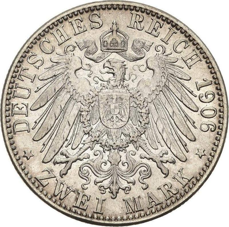 The information on the current value of the German coin 2 Mark 1906 "Baden" with the letters G is based on actual auction sales of similar specimens. To reflect the current price level, our service monitors over 590 numismatic companies and records auction results in the coin catalog and auction archive. Please note that the exact value depends directly on the coin's condition, so the average price serves only as an approximate estimate.