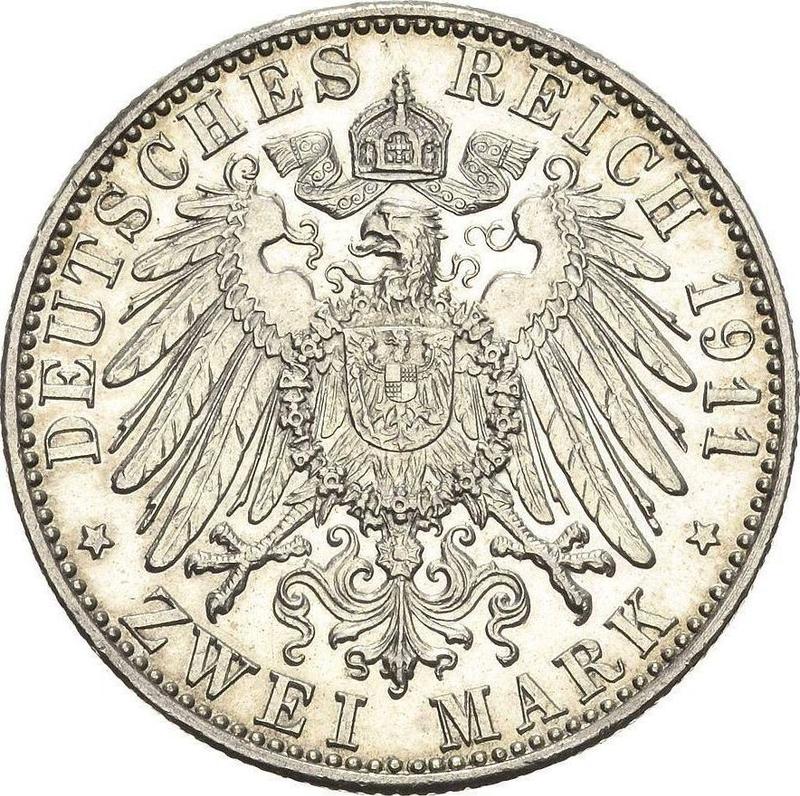 The information on the current value of the German coin 2 Mark 1911 "Baden" with the letters G is based on actual auction sales of similar specimens. To reflect the current price level, our service monitors over 590 numismatic companies and records auction results in the coin catalog and auction archive. Please note that the exact value depends directly on the coin's condition, so the average price serves only as an approximate estimate.