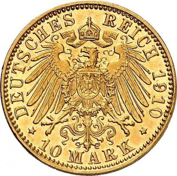 Find out the current coin value of the German 10 Mark 1910 "Bayern" with mark D. This gold coin from the times of German Empire struck at the Munich Mint. Wondering how much a coin like this is worth? The record price belongs to the lot 23936 sold at the Heritage Auctions auction for USD 4,888. Bidding took place January 2, 2011.