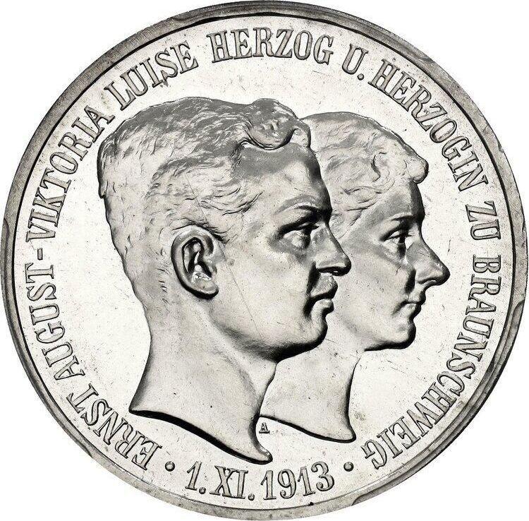 According to the latest data as of December 6, 2025 the average price of a Silver coin 3 Mark 1915 "Braunschweig" with mark A, Accession to the throne, Without "U. LÜNEB" is 1300 USD for regular strike and 1600 USD for coins minted using the PROOF technology.