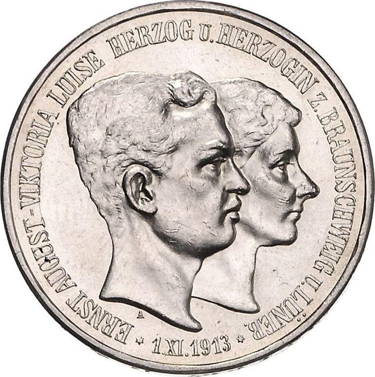 According to the latest data as of December 6, 2025 the average price of a Silver coin 3 Mark 1915 "Braunschweig" with mark A, Accession to the throne, With "U. LÜNEB" is 210 USD for regular strike and 530 USD for coins minted using the PROOF technology.