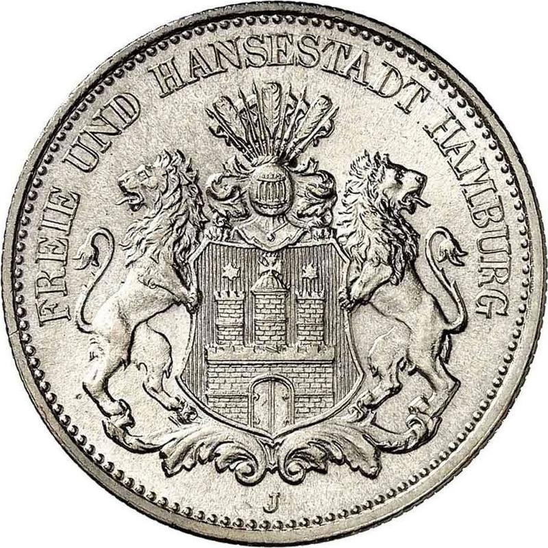 According to the latest data as of December 6, 2025 the average price of a Silver coin 2 Mark 1883 "Hamburg" with mark J is 1100 USD for regular strike and 2100 USD for coins minted using the PROOF technology.