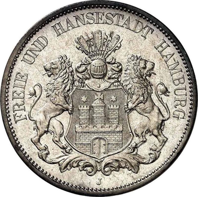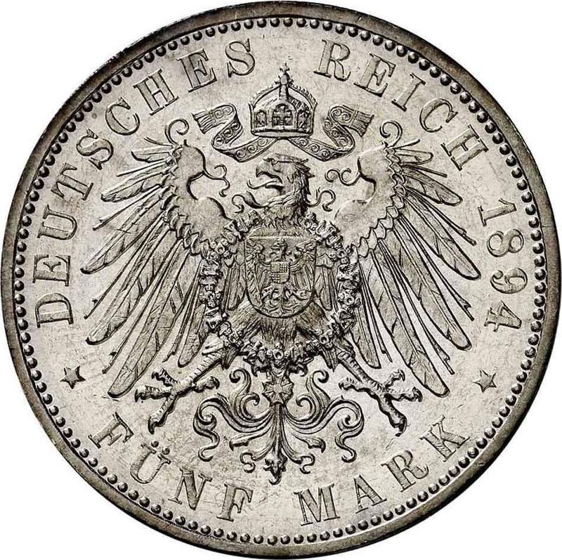Find out the current coin value of the German 5 Mark 1894 "Hamburg" with mark J. This silver coin from the times of German Empire struck at the Hamburg Mint. Wondering how much a coin like this is worth? The record price belongs to the lot 32517 sold at the Heritage Auctions auction for USD 6,000. Bidding took place May 8, 2024.