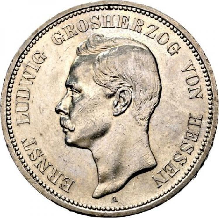 Find out the current coin value of the German 5 Mark 1898 "Hesse" with mark A. This silver coin from the times of German Empire struck at the Berlin Mint. Wondering how much a coin like this is worth? The record price belongs to the lot 51350 sold at the Heritage Auctions auction for USD 5,463. Bidding took place January 7, 2007.