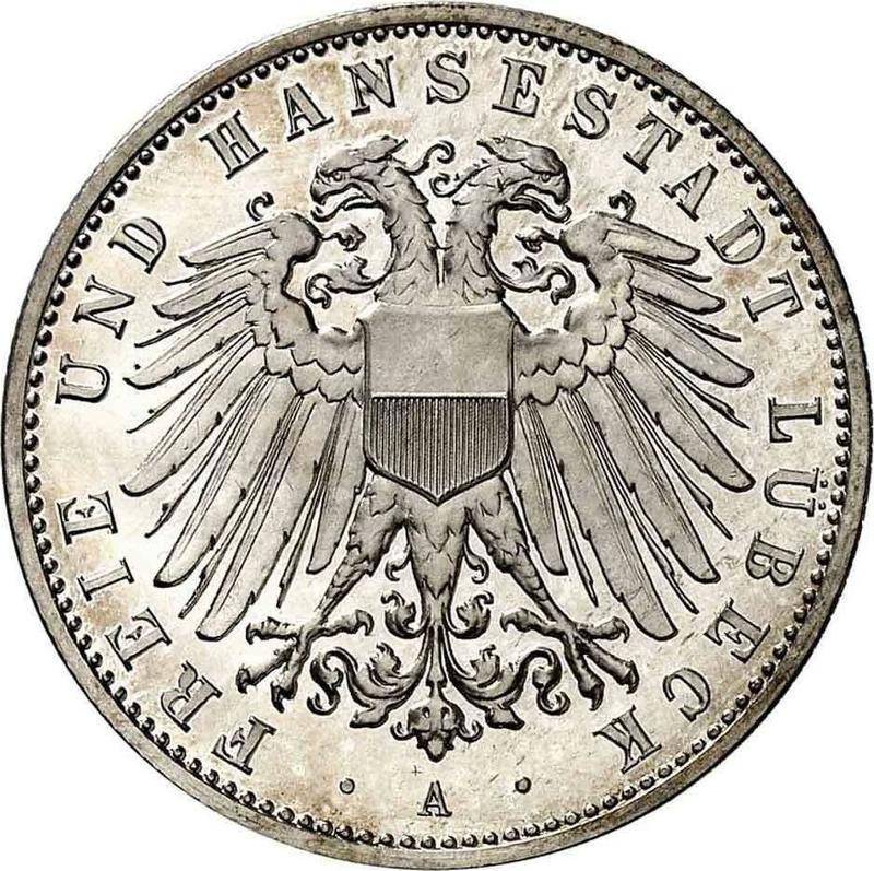According to the latest data as of December 5, 2025 the average price of a Silver coin 2 Mark 1904 "Lubeck" with mark A is 270 USD for regular strike and 680 USD for coins minted using the PROOF technology.