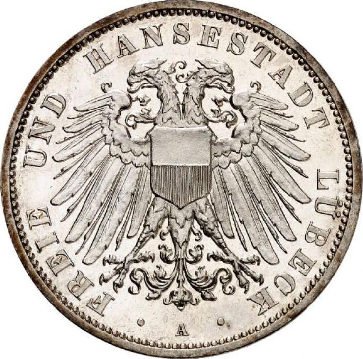 According to the latest data as of December 6, 2025 the average price of a Silver coin 3 Mark 1910 "Lubeck" with mark A is 180 USD for regular strike and 650 USD for coins minted using the PROOF technology.