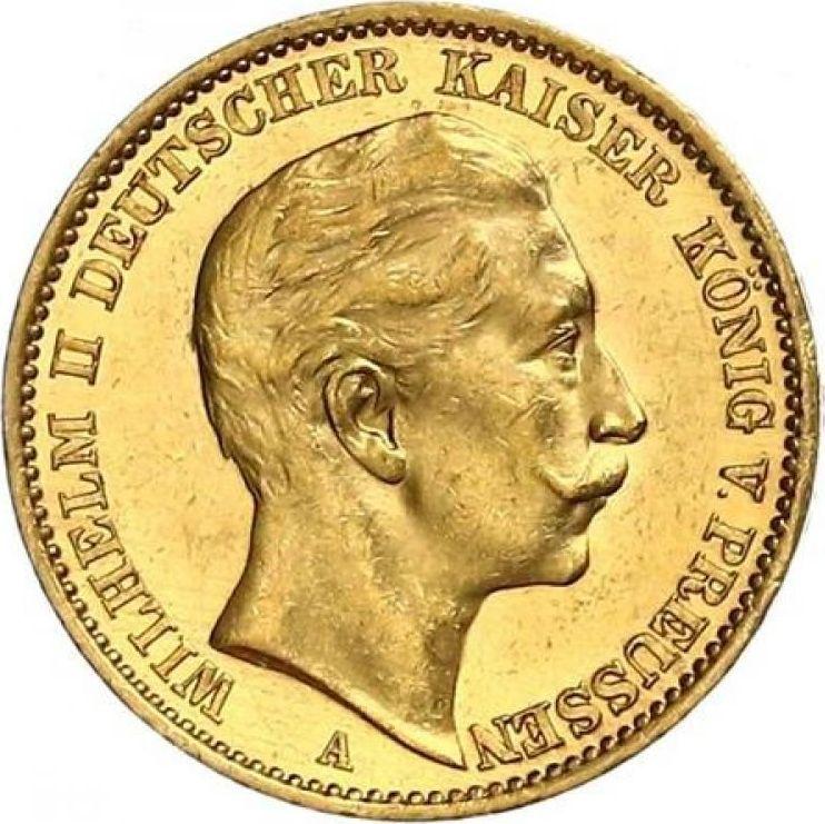 Find out the current coin value of the German 20 Mark 1911 "Prussia" with mark A. This gold coin from the times of German Empire struck at the Berlin Mint. Wondering how much a coin like this is worth? The record price belongs to the lot 25198 sold at the Heritage Auctions auction for USD 3,120. Bidding took place June 23, 2024.