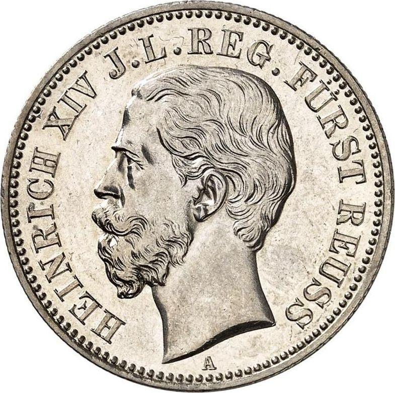 According to the latest data as of December 5, 2025 the average price of a Silver coin 2 Mark 1884 "Reuss-Gera" with mark A is 530 USD for regular strike and 4300 USD for coins minted using the PROOF technology.