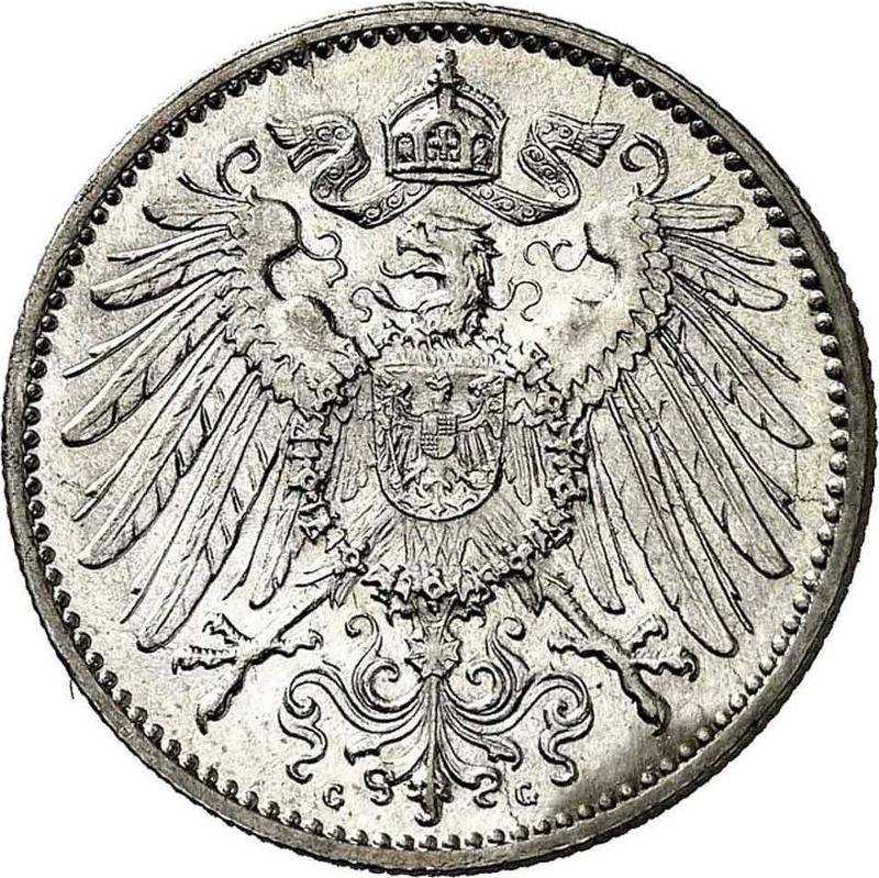 Find out the current coin value of the German 1 Mark 1894 with mark G. This silver coin from the times of German Empire struck at the Karlsruhe Mint. Wondering how much a coin like this is worth? The record price belongs to the lot 7636 sold at the Fritz Rudolf Künker GmbH & Co. KG auction for EUR 1,800. Bidding took place September 29, 2006.