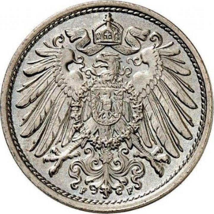 Find out the current coin value of the German 10 Pfennig 1900 with mark F. This copper-nickel coin from the times of German Empire struck at the Stuttgart Mint. Wondering how much a coin like this is worth? The record price belongs to the lot 725 sold at the Heidelberger Münzhandlung Herbert Grün auction for EUR 54. Bidding took place May 17, 2017.