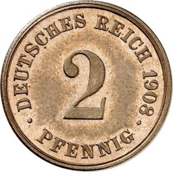 2 Pfennig 1908 J "Type 1904-1916" (Germany, German Empire)