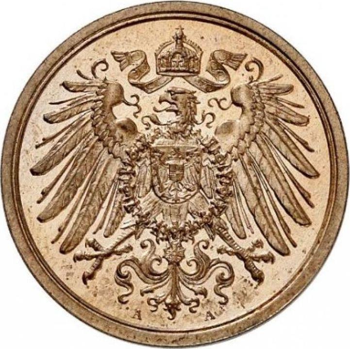 Find out the current coin value of the German 2 Pfennig 1913 with mark A. This copper coin from the times of German Empire struck at the Berlin Mint. Wondering how much a coin like this is worth? The record price belongs to the lot 2122 sold at the Fritz Rudolf Künker GmbH & Co. KG auction for EUR 150. Bidding took place February 7, 2017.