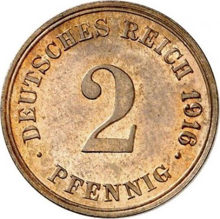 How much is the copper coin of German Empire 2 Pfennig 1916 G?
