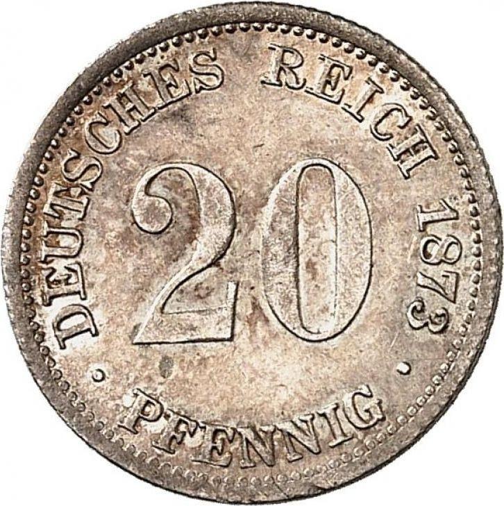Find out the current coin value of the German 20 Pfennig 1873 with mark H. This silver coin from the times of German Empire struck at the Darmstadt Mint. Wondering how much a coin like this is worth? The record price belongs to the lot 182 sold at the Heidelberger Münzhandlung Herbert Grün auction for EUR 1,650. Bidding took place May 17, 2017.