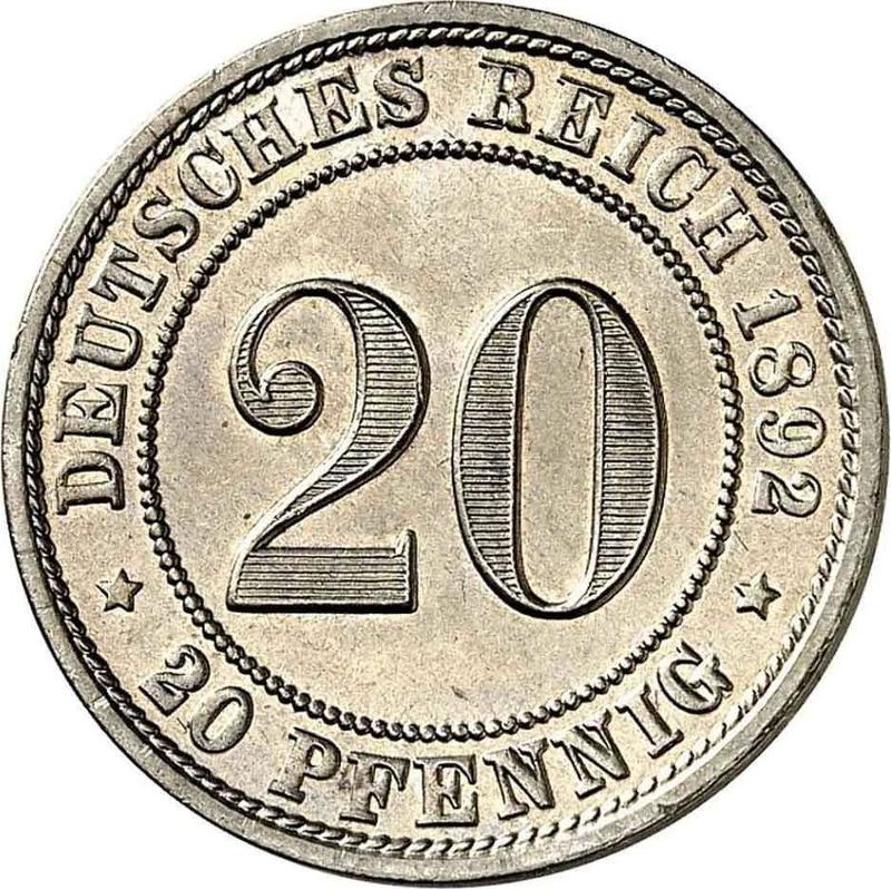 20 Pfennig 1892 D "Type 1890-1892" (Germany, German Empire)