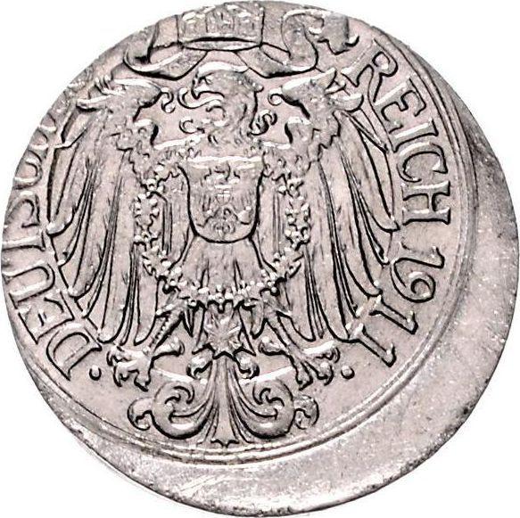 Find out the current coin value of the German 25 Pfennig 1909-1912 with mark J. Off-center strike. This nickel coin from the times of German Empire struck at the Hamburg Mint. Wondering how much a coin like this is worth? The record price belongs to the lot 467 sold at the Münzenhandlung Harald Möller GmbH auction for EUR 500. Bidding took place June 29, 2020.