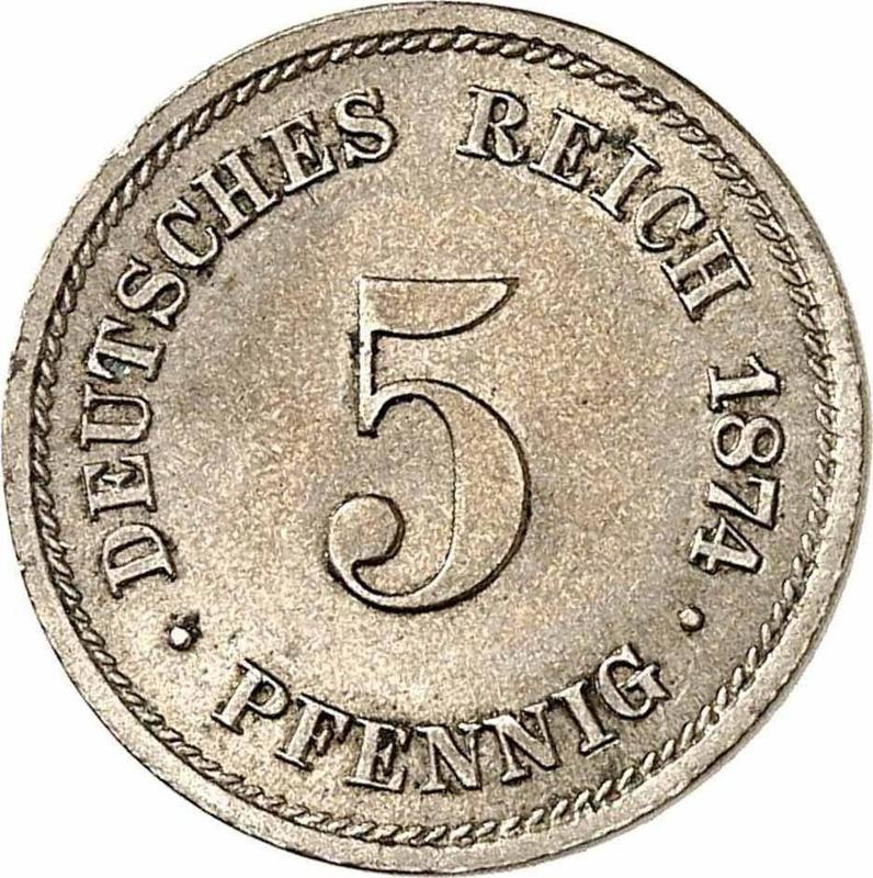How much is the copper-nickel coin of German Empire 5 Pfennig 1874 B?