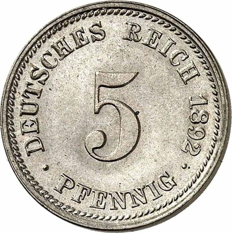 How much is the copper-nickel coin of German Empire 5 Pfennig 1892 D?