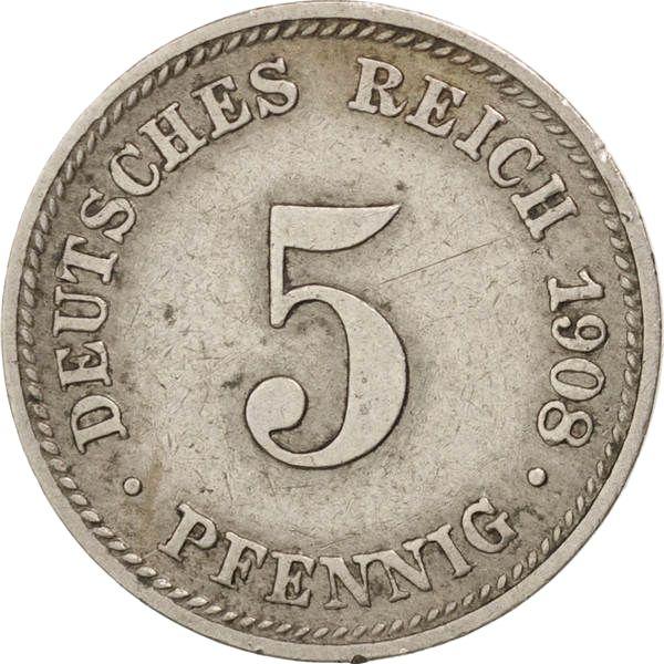 5 Pfennig 1908 D "Type 1890-1915" (Germany, German Empire)