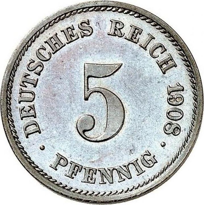 5 Pfennig 1908 G "Type 1890-1915" (Germany, German Empire)