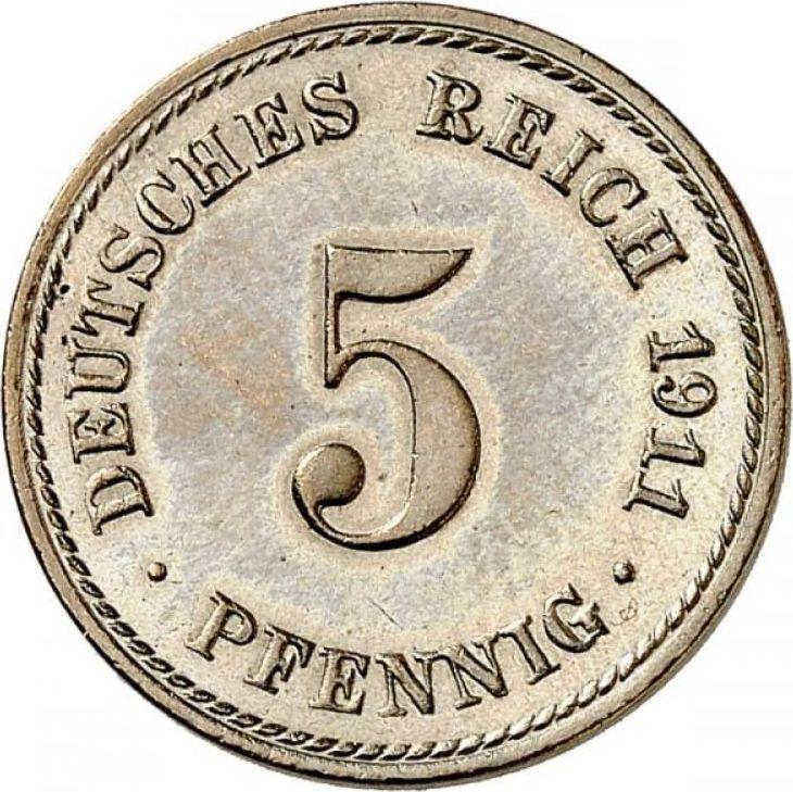 5 Pfennig 1911 A "Type 1890-1915" (Germany, German Empire)