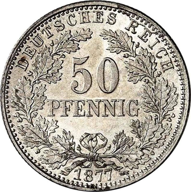 According to the latest data as of December 5, 2025 the average price of a Silver coin 50 Pfennig 1877 with mark J is 170 USD for regular strike and 520 USD for coins minted using the PROOF technology.