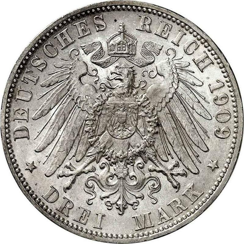 3 Mark 1909 F "Wurtenberg" (Germany, German Empire)