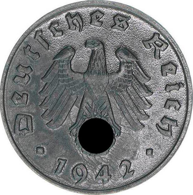 Find out the current coin value of the German 1 Reichspfennig 1942 with mark B. This zinc coin from the times Third Reich struck at the Vienna Mint
