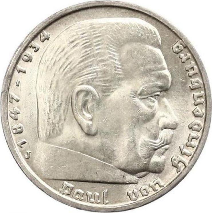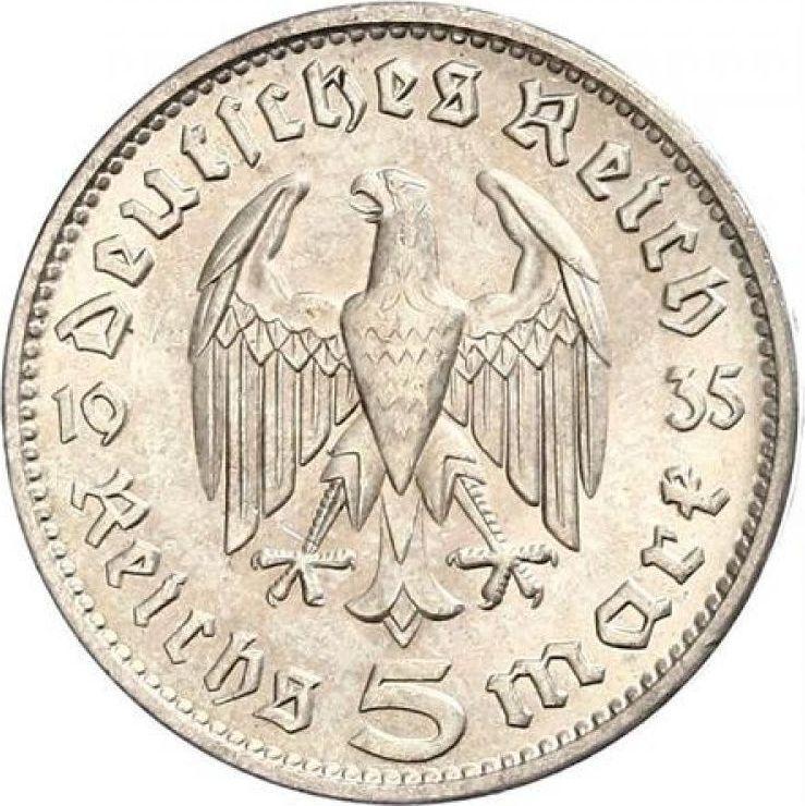 5 Reichsmark 1935 J "Hindenburg" (Germany, Third Reich)