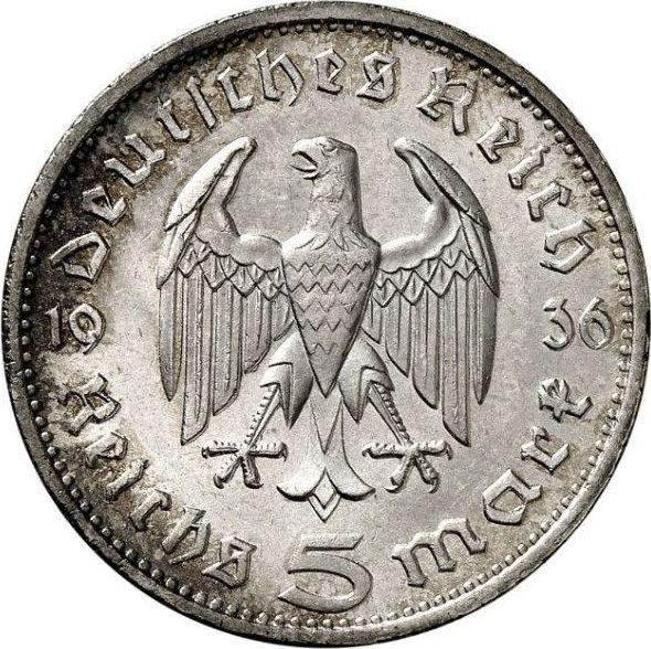 5 Reichsmark 1936 G "Hindenburg" (Germany, Third Reich)