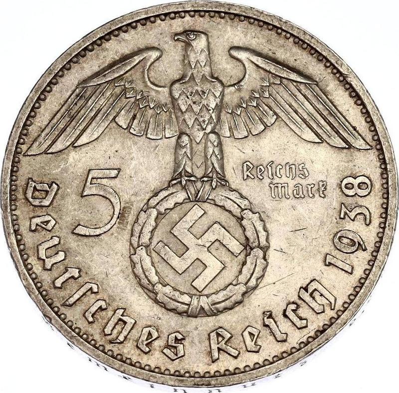 How much is the silver coin Third Reich 5 Reichsmark 1938 G?